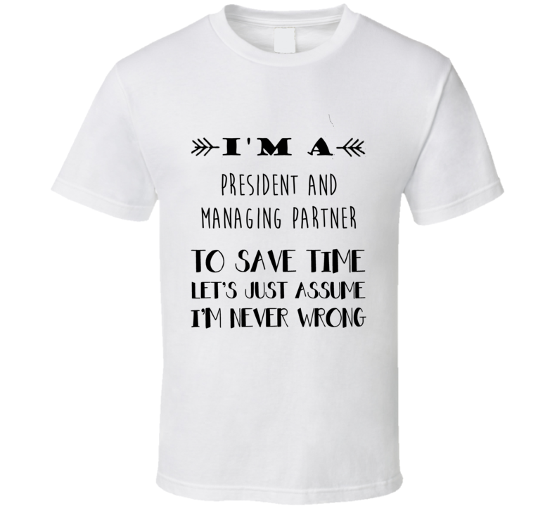 This Im A President and Managing Partner To Save Time Job T Shirt is one of our favorites, it won’t be around forever so order yours here today!